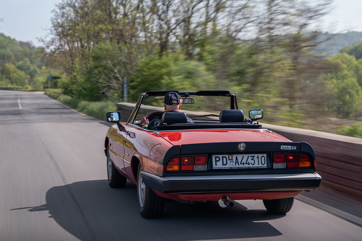 Techniquement, la Spider repose sur une base éprouvée : celle de la Giulia Sprint GT raccourcie. Propulsion, boîte manuelle à cinq rapports, quatre freins à disque et un quatre cylindres double arbre de 1 570 cm³ développant 110 ch pour moins d’une tonne : l’équation est simple, mais redoutablement efficace. Une définition presque parfaite du plaisir de conduite à l’italienne. Durant ses 28 années de carrière, la Spider évoluera en quatre séries distinctes, sans jamais trahir son ADN.