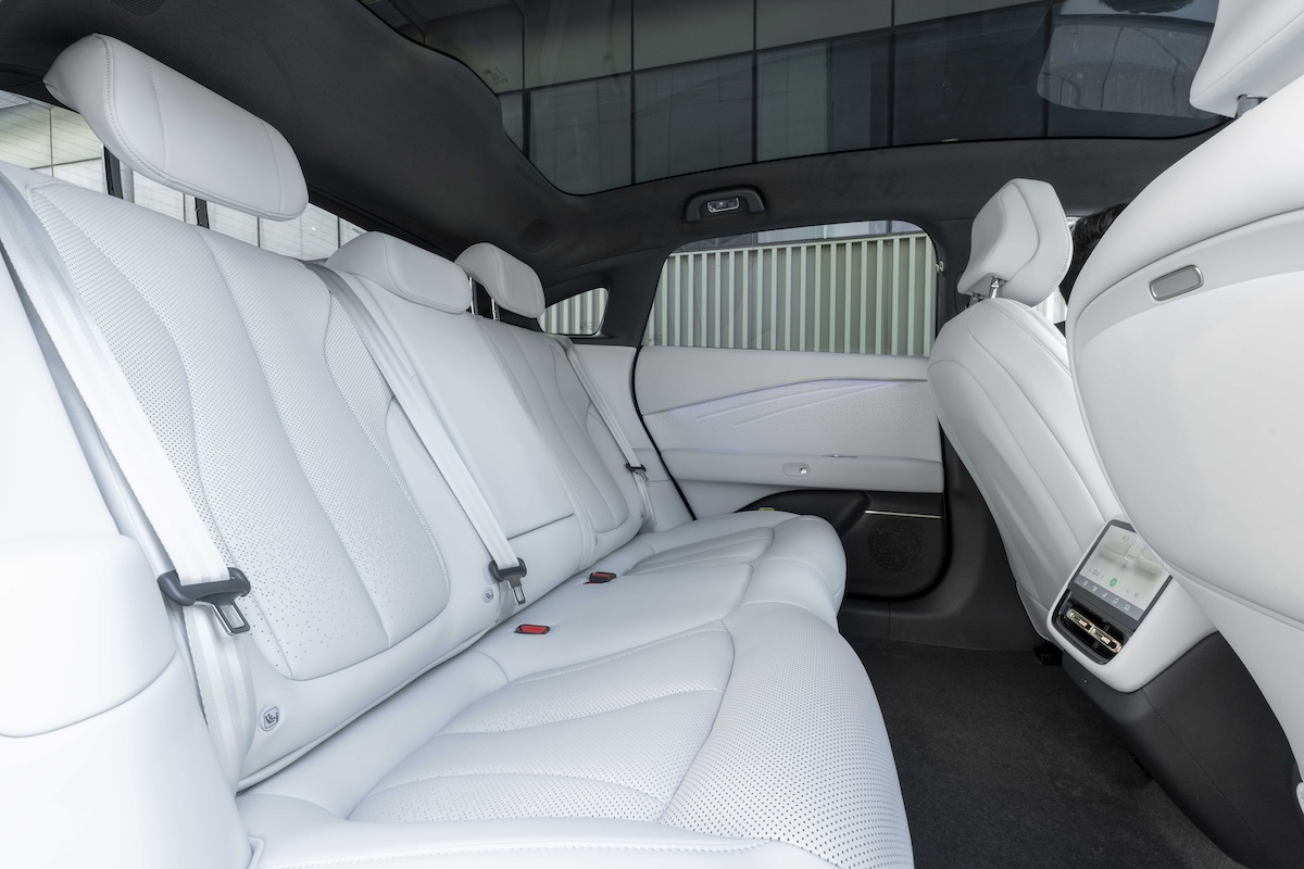 En attendant, plutôt que de berline, il convient ici de parler de limousine, du moins si l’on se réfère à son gabarit et à sa longueur de 5,07 m. On évolue clairement dans cet univers, où elle côtoierait par exemple des BMW i5 (5,06 m) ou des Volvo ES90 (5 m), évoluant toutefois dans d’autres sphères de prix.
