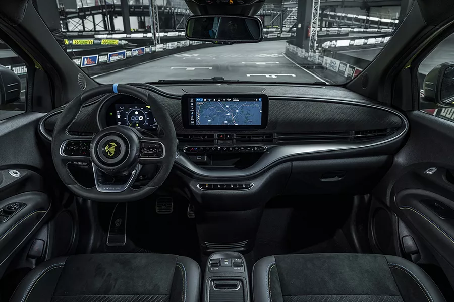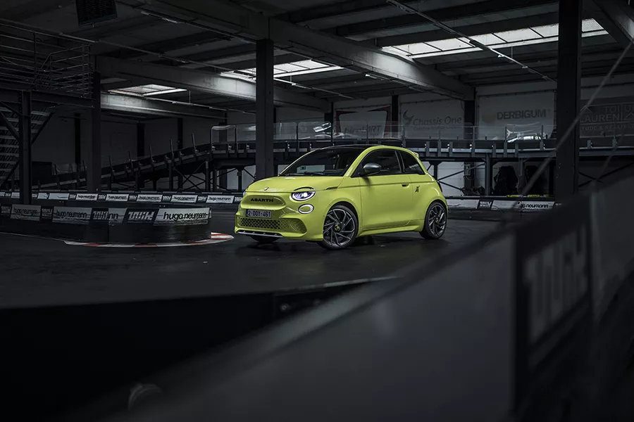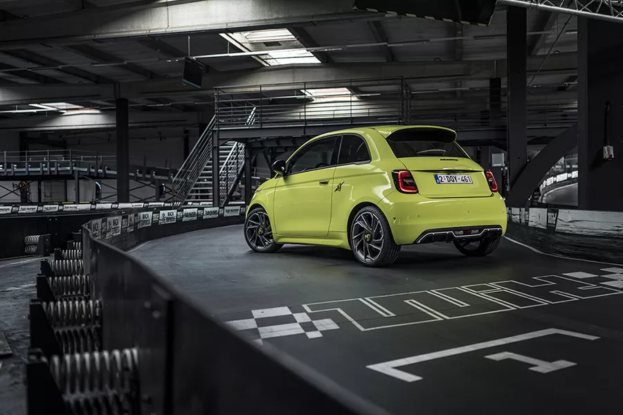 • Tout comme les versions thermiques de la gamme, la première Abarth électrique repose sur une base Fiat, en l’occurrence celle de la 500e. Cette version badgée du scorpion reste disponible en « coupé » ou « cabrio », mais pas en « 3+1 places ». Comme d’habitude, Abarth a relooké le modèle à sa façon, pour lui donner une allure plus musclée, avec un nez redessiné, de plus gros pare-chocs, des jupes latérales, un diffuseur et des jantes spécifiques. À bord, on est parfaitement installé dans des sièges confortables, tandis que le volant à fond plat recouvert d’Alcantara est agréable à prendre en mains. Un bon point également pour la qualité de l’assemblage des matériaux. Par contre, à l’arrière et côté coffre, cette Abarth est logiquement tout aussi exigüe que sa cousine de chez Fiat.