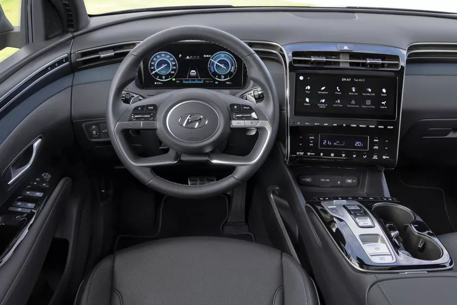 La dernière génération de Tucson, lancée fin 2020, a été restylée pour 2024. La carrosserie évolue peu, mais l’habitacle est totalement redessiné, avec une toute nouvelle planche de bord: le combiné d’instruments et les écrans sont désormais regroupés dans une large dalle numérique moderne. Et en dessous, on trouve un panneau de commande séparé pour les fonctions de climatisation. Le lifting apporte aussi avec lui un nouveau volant. Et un levier de vitesse au volant sur les versions automatiques. Une ambiance de bord épurée, qui rappelle les modèles électriques de la gamme Ioniq. L’habitacle et le coffre sont spacieux, mais les espaces de rangement sont comptés, surtout à l’avant. La banquette n’est pas coulissante, mais ses dossiers s’inclinent et sont rabattables en trois parties.