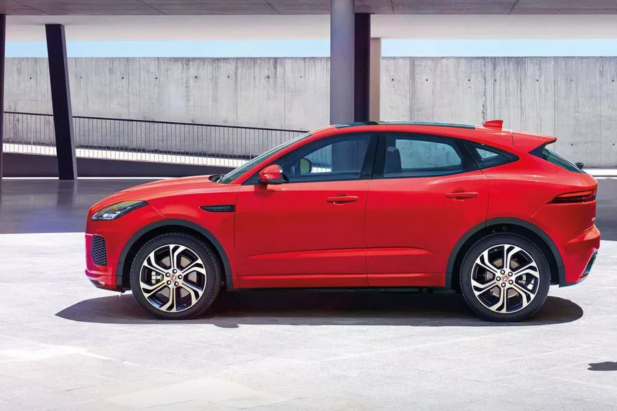 Le petit SUV Jaguar repose sur une suspension d’origine plutôt ferme, mais un amortissement piloté est proposé. En conduite dynamique, cette «baby-Jag» haute sur pattes se montre efficace mais ne peut cacher son poids, qui a aussi une influence néfaste sur la consommation et les émissions de CO2. Sous le capot, on trouve un tricylindre 1.5 à essence, mais aussi des 4-cylindres 2 litres (essence et Diesel). Presque tous les moteurs sont associés d’office à la transmission intégrale. Il y a aussi une version hybride plug-in de 309 ch, fiscalement avantageuse pour les indépendants.